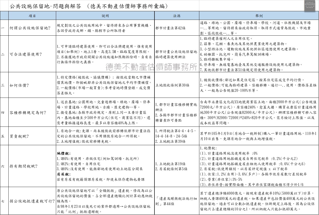 公共設施保留地常見問題與解答